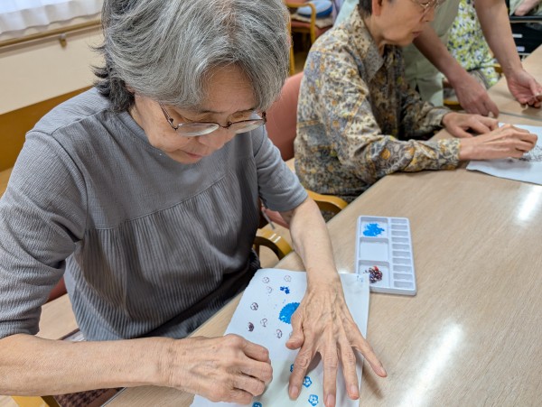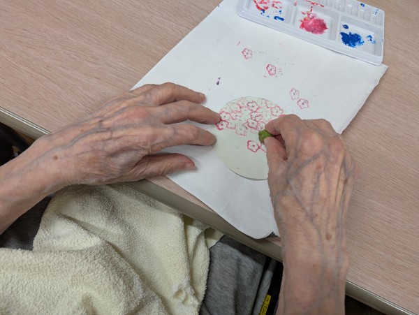 野菜スタンプは、高齢者の方々にとって手指の機能回復・認知機能の向上・五感の刺激といった効果が期待できます。