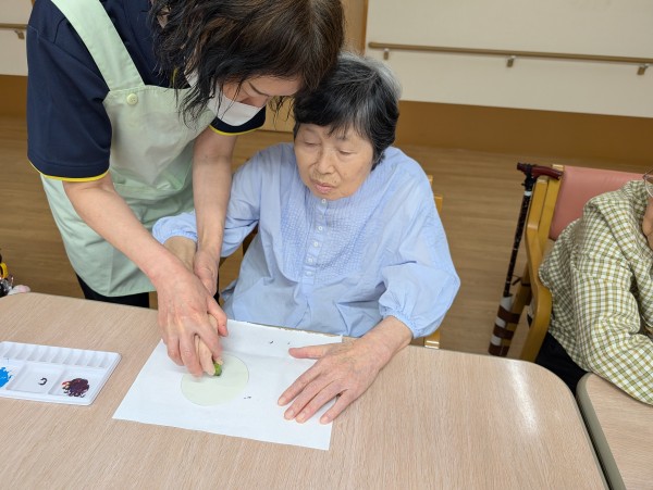 今回はオクラを使用し、絵の具で色付けしました(*^^*) 皆さんポンポンとリズムに乗ってます!