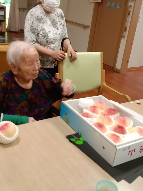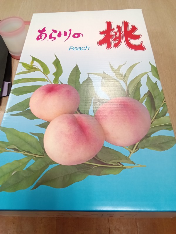 ご覧ください~! 大きな美味しそうな桃です!