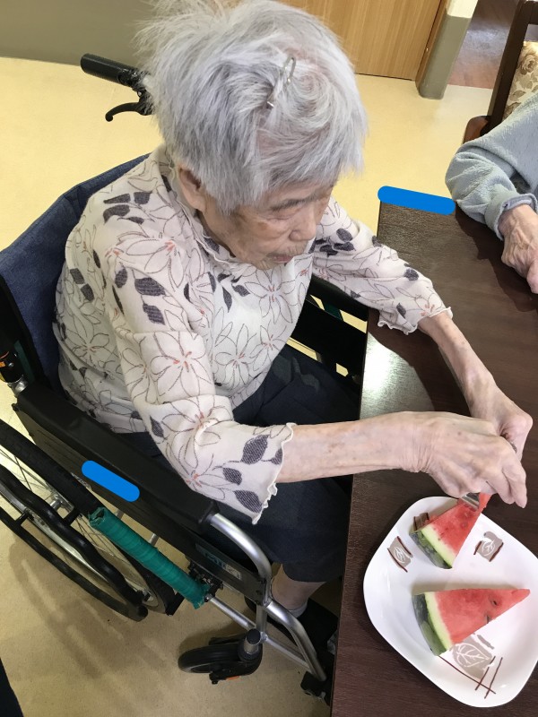 今月はおやつの時間にアイスクリームやスイカをいただきました