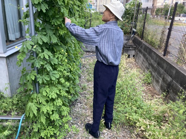ゴーヤは段差がある箇所にあり、志願してくれた健脚2名がゴーヤも乱獲。「ゴーヤは苦くて河童も食べない」