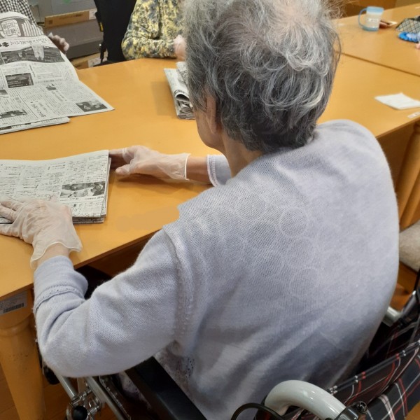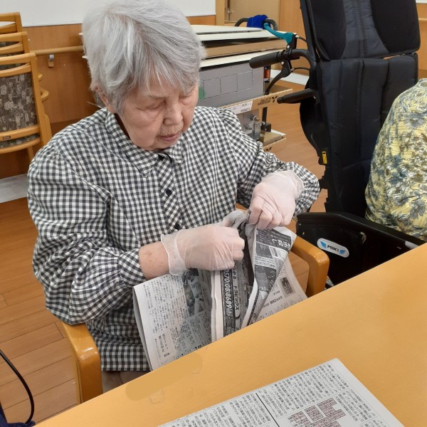 先日、スタッフの仕事のひとつである“新聞折り”を