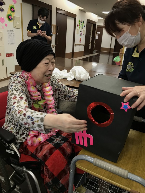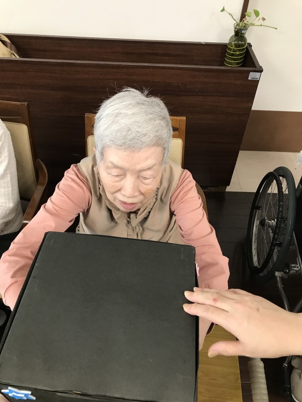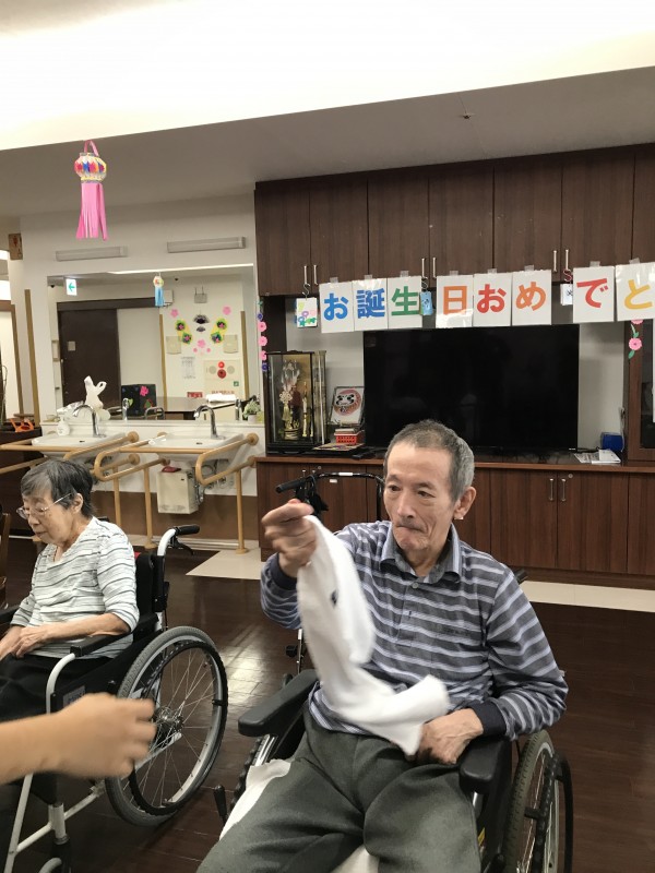 そんな中3階のお誕生日会がありました。7月は2名いらっしゃいました。皆さんの前で少し緊張されています。