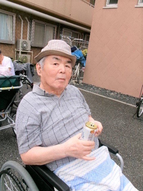 施設の前に集まり、外気浴をしながら、