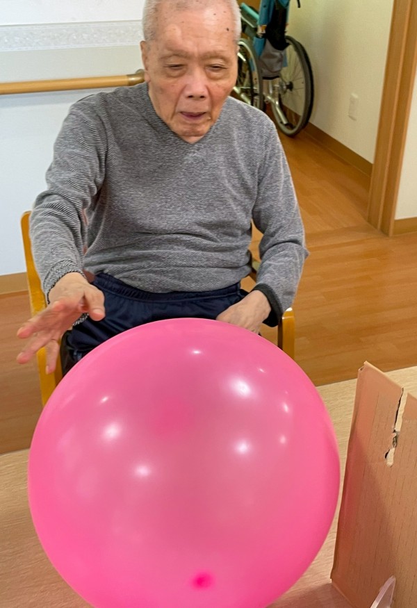 さて、2階では先日大きなボールを使ったレク行いました!!