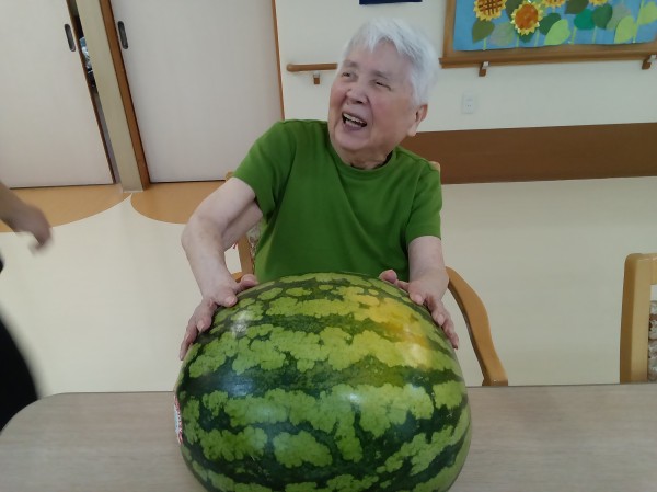 大きなスイカを前に