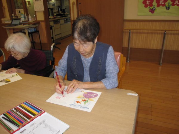 と悩みながら思い思いにぬり絵の時間を楽しんでおられました。