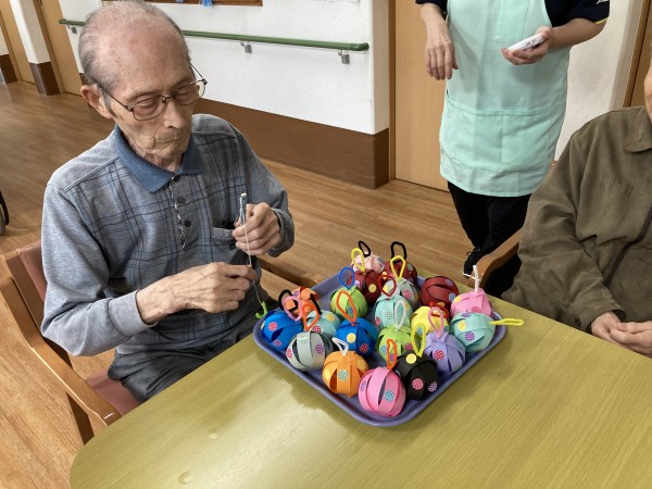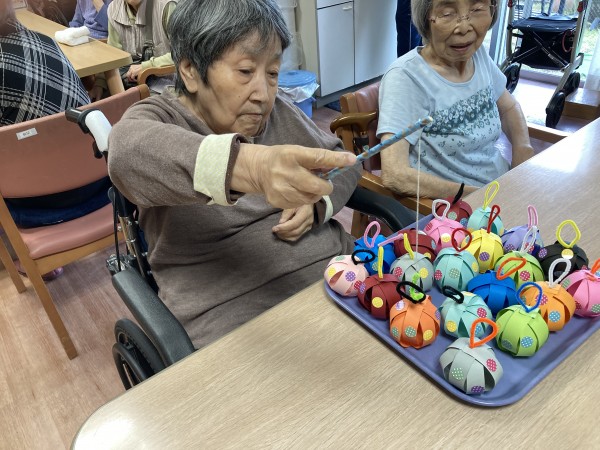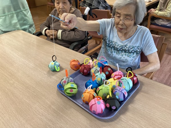 やなかのヨーヨーは職員お手製の紙ヨーヨー