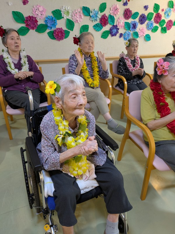 家族会の日、いつも練習している私たちのフラダンスを披露させていただきました。