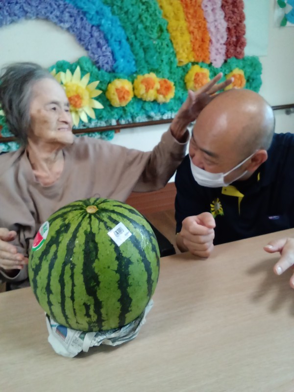 今回は1階のご利用者様のスイカ割りのご様子をお届けいたします!