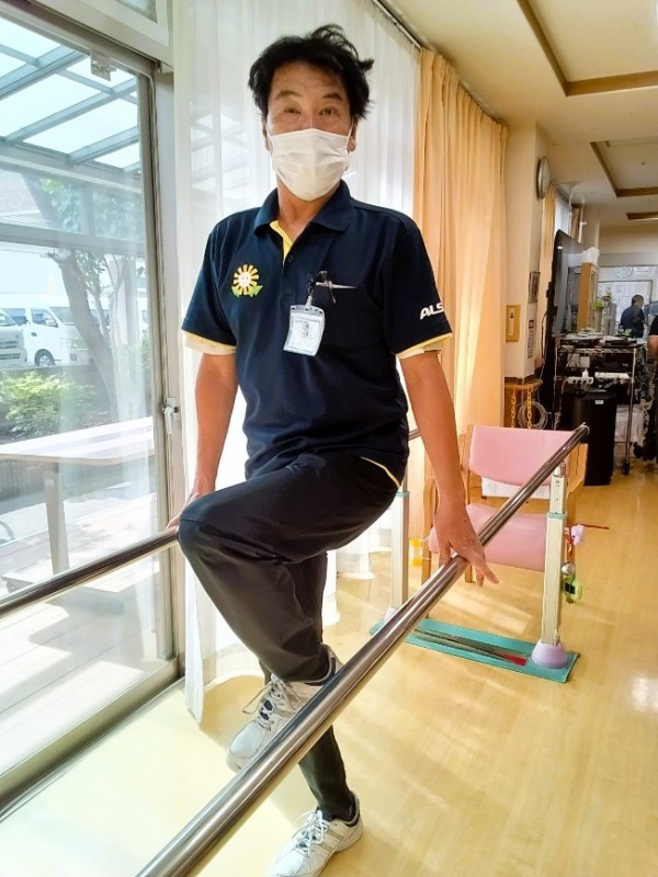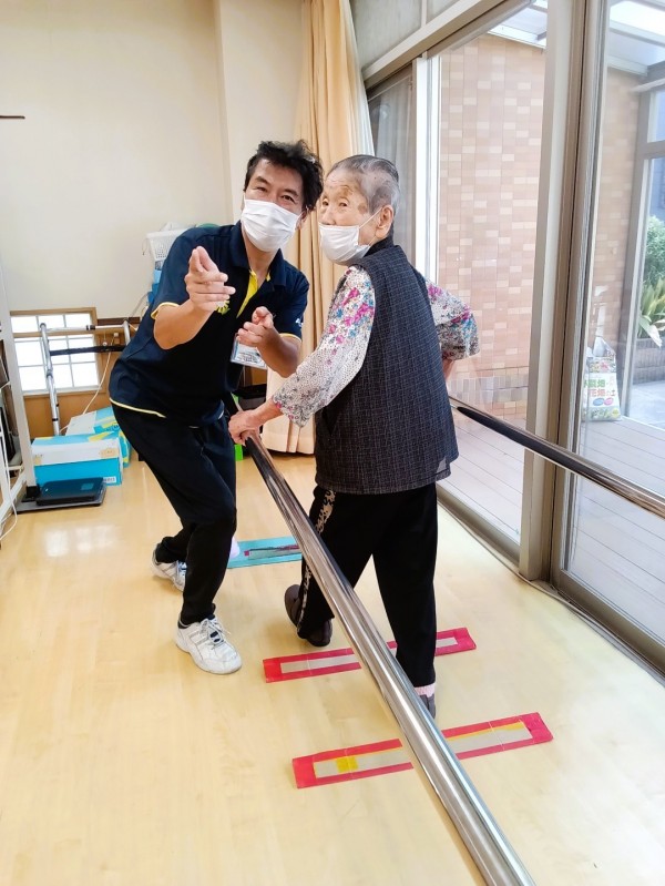 機能訓練指導員H・Tも汗を垂らし、息を切らしながらご利用者様の訓練をさせていただいております…!