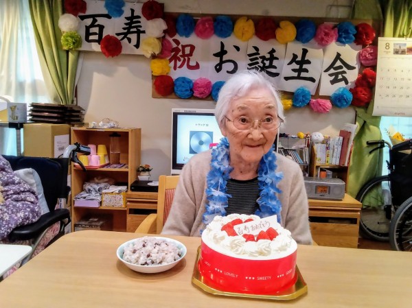 グループホームみんなの家・中野鷺宮で8月のお誕生会で「百寿」のお祝い(2)