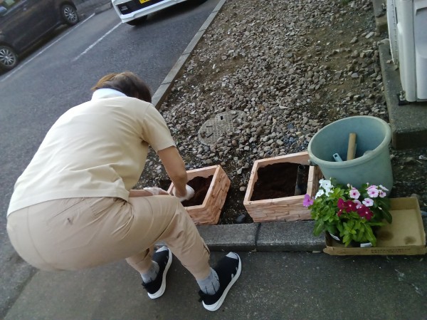 花の苗をみたM様は「任せてね!!素敵な花壇を作るわよ!!」