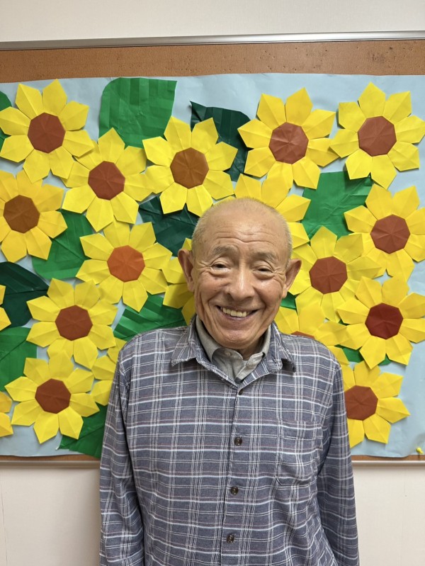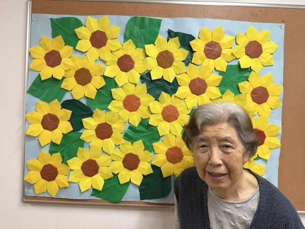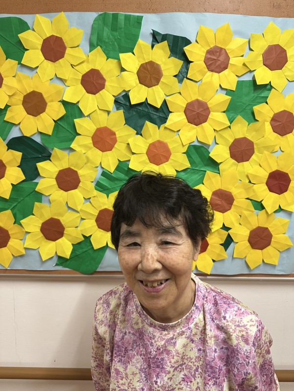 夏らしい『向日葵の壁面』の前で,笑顔でパシャリ♡