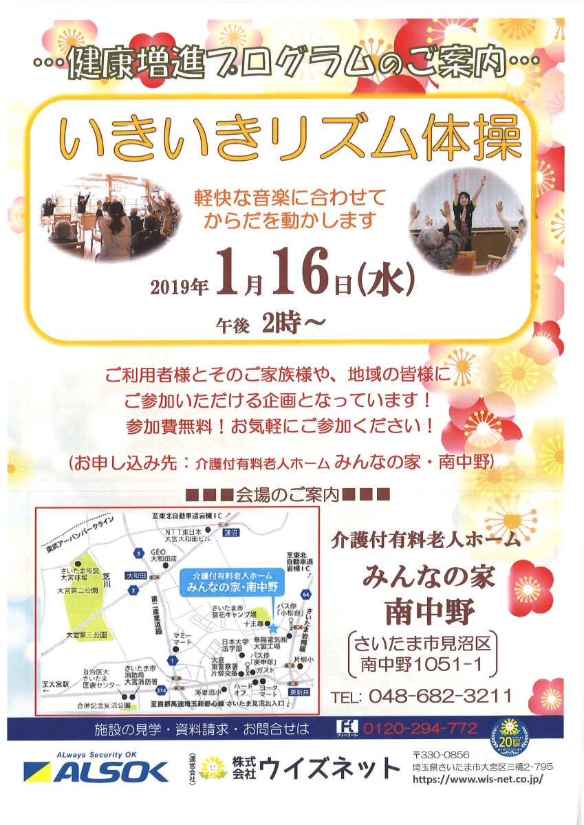 ◎グループホーム みんなの家・南中野で、1月16日 14:00~14:30に ”いきいきリズム体操”を開催致します。どなたでもご自由に参加できます。お気軽にお越しください。