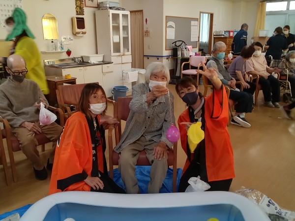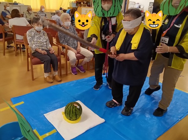 今回は、千本引き、ヨーヨー釣り、すいか割りをしつつ、