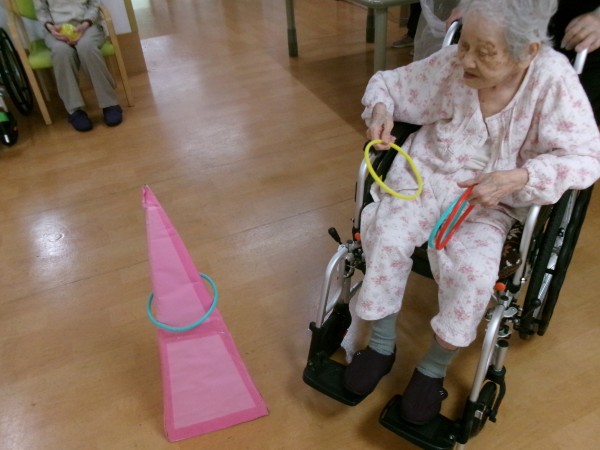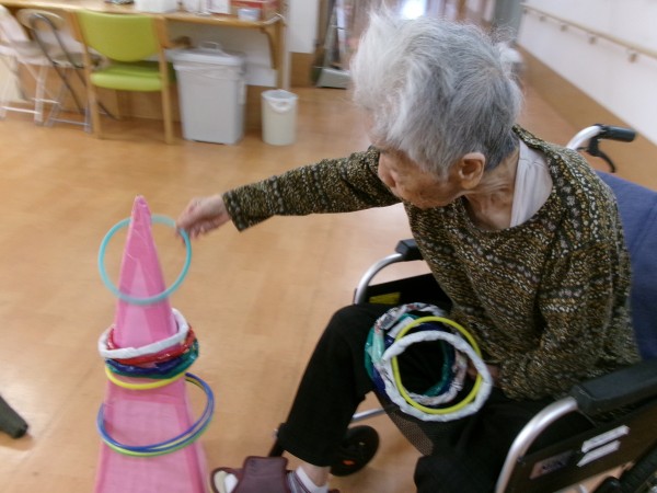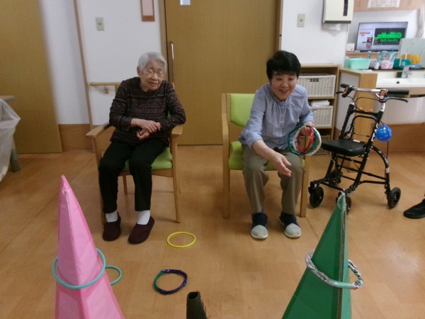 輪投げに挑戦し、うまく入ると大喜びでした。