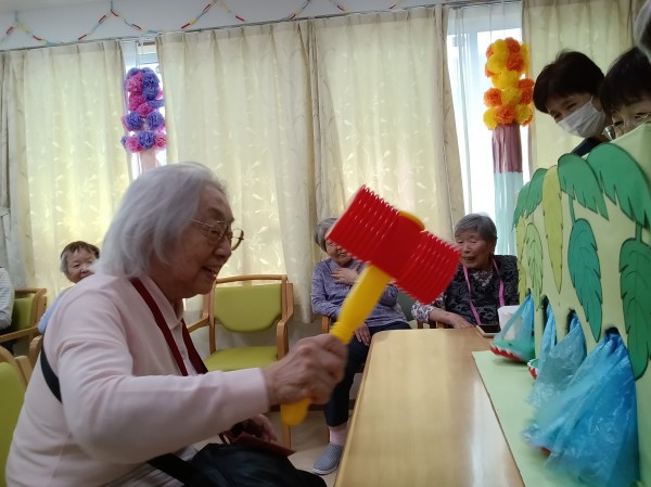 穴から出てくるワニを皆さん必死に叩いておりました。