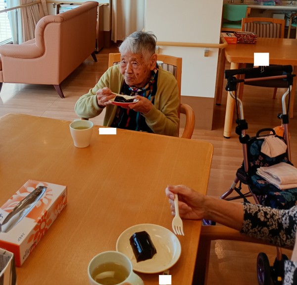 昨日、8月24日におやつレクを行いました。みなさまにわらび餅とくずもちの好きな方を選んで召し上がっていただきました。