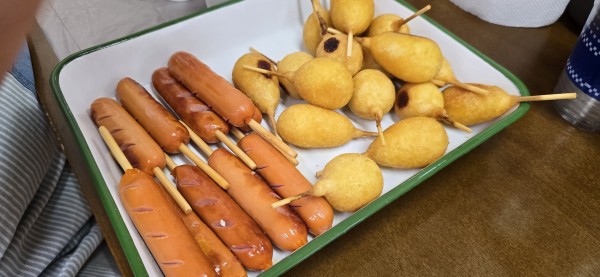飲みものを準備し、フランクフルトや、アメリカンドック、