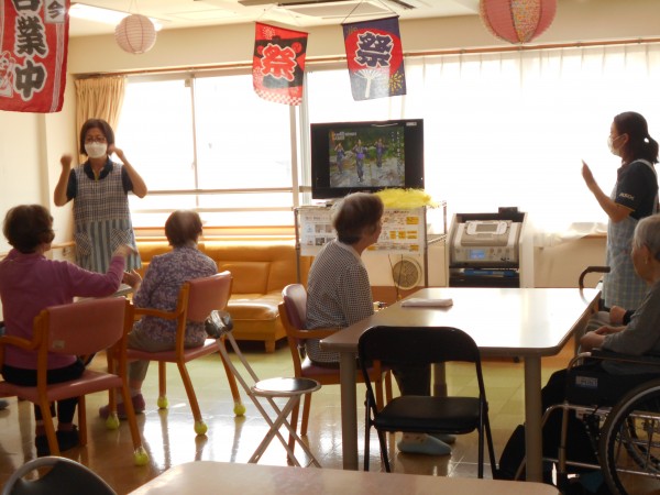 午前中は花笠で写真を撮ったりしながら、午後の盆踊りに向けてスタッフとご利用者様で踊りの練習を行いましたあー♪♪