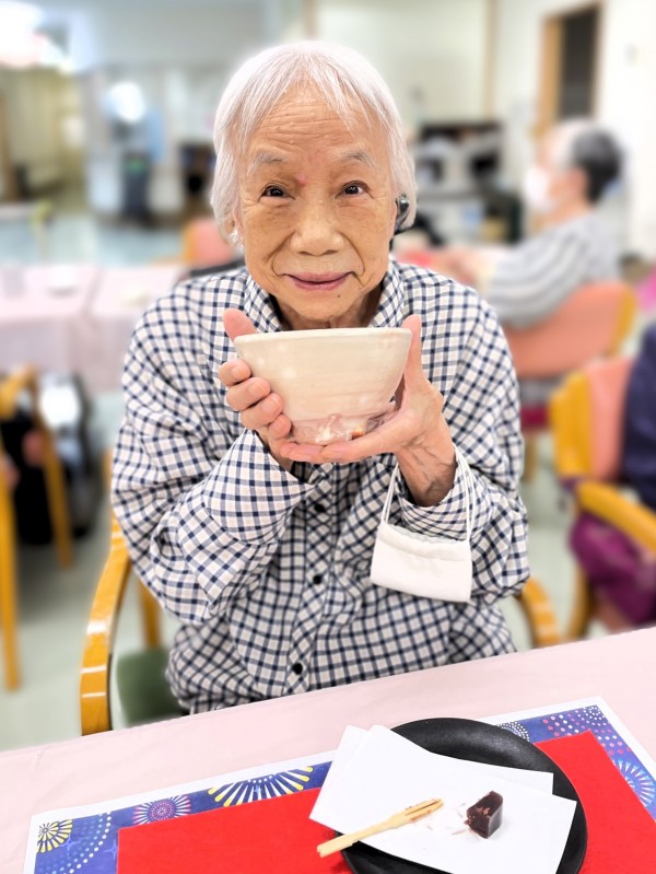 食べきった頃合いをみて職員がお抹茶を点てさせていただきます。