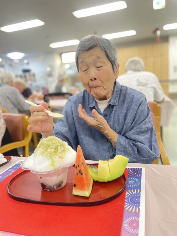 お次は夏のお茶会限定!かき氷にフルーツを添えてご提供♪