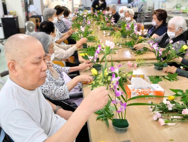 どんどん手を動かされすべての花と葉っぱを挿し活け