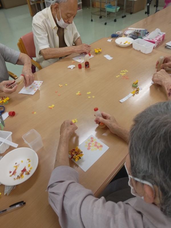切り抜いた黄色と橙色2色の花をお好みのバランスでふんだんに貼り付けていただきました。