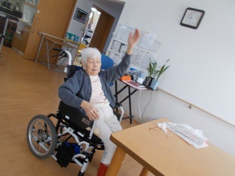 全員が参加されるわけではありませんが、車いす????の生活のご利用者様であっても、上半身を中心に
