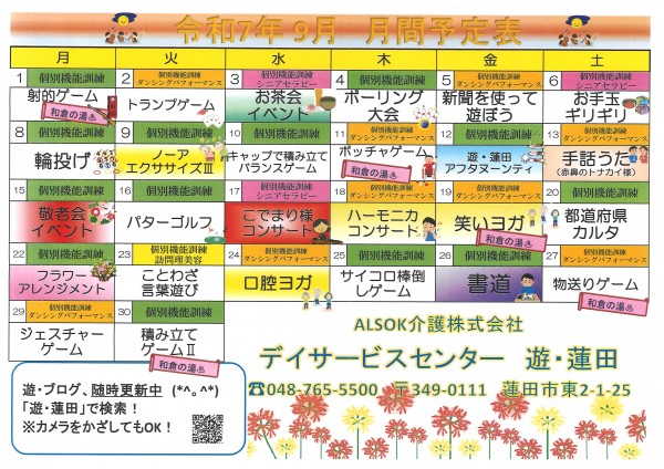 【予定表】来月は敬老会がありますよ♪