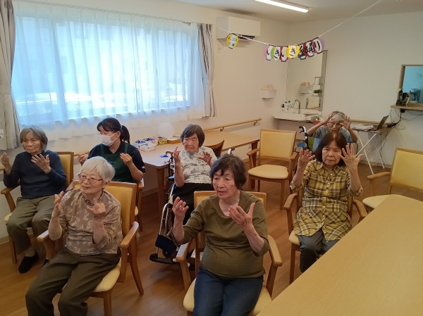 体操においては、大体40分~60分程行なっておりますが、ほとんどの方が最後まで集中して取り組まれています。最初は参加されずに見ているだけだった方も、次第に自然と身体を動かされ、気付けば楽しんでいたなんてこともあります。