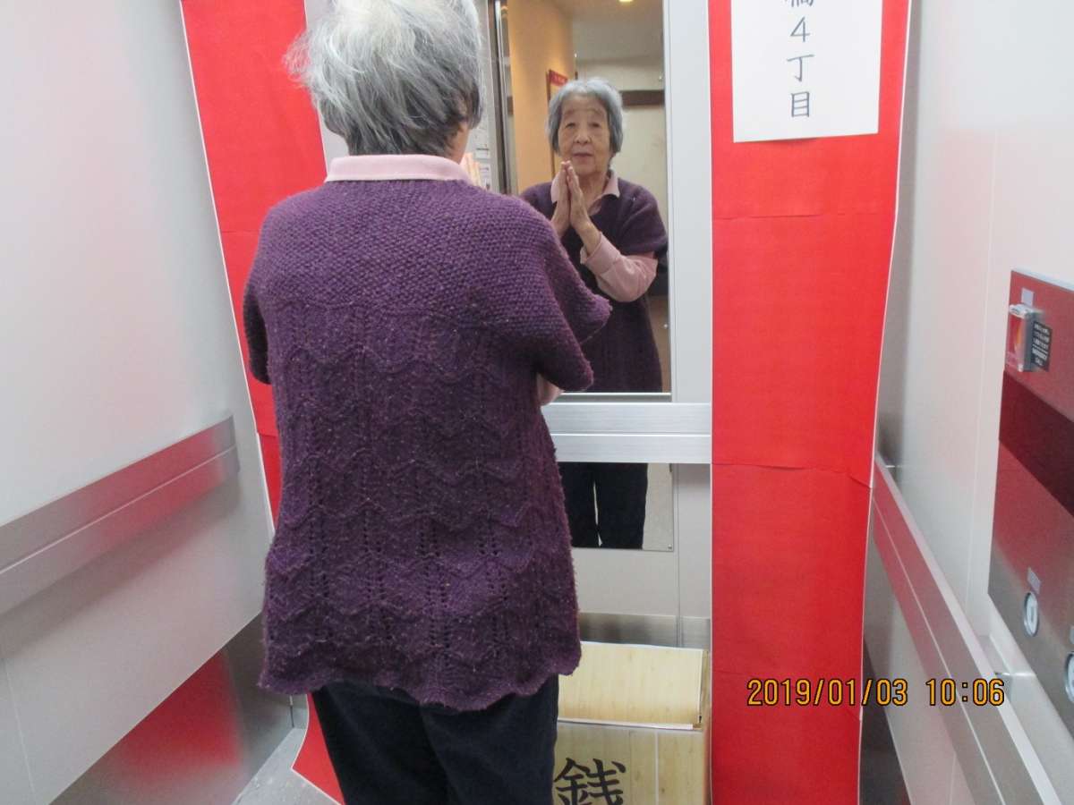 毎年三橋4丁目では、エレベーターの中に手作り神社を構え