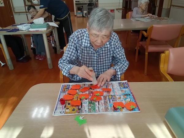 まだまだ暑い日が続きますが、今回いずみ野1階では、表紙の写真は『鬼のパンツ』のようでしたが、実は『秋の美味しい食べ物』を壁画にしようと作成を開始しました(^-^)