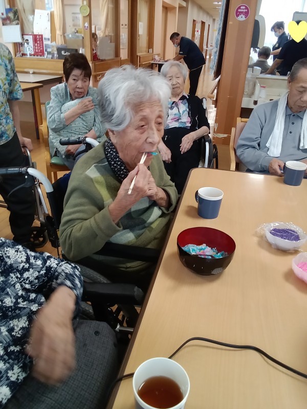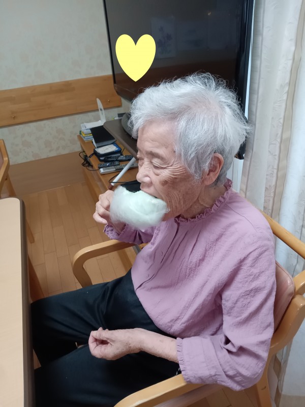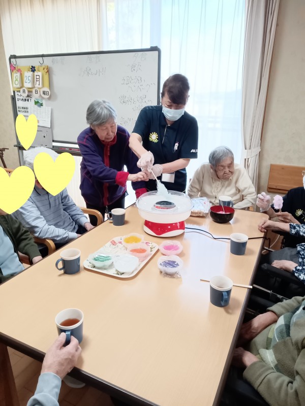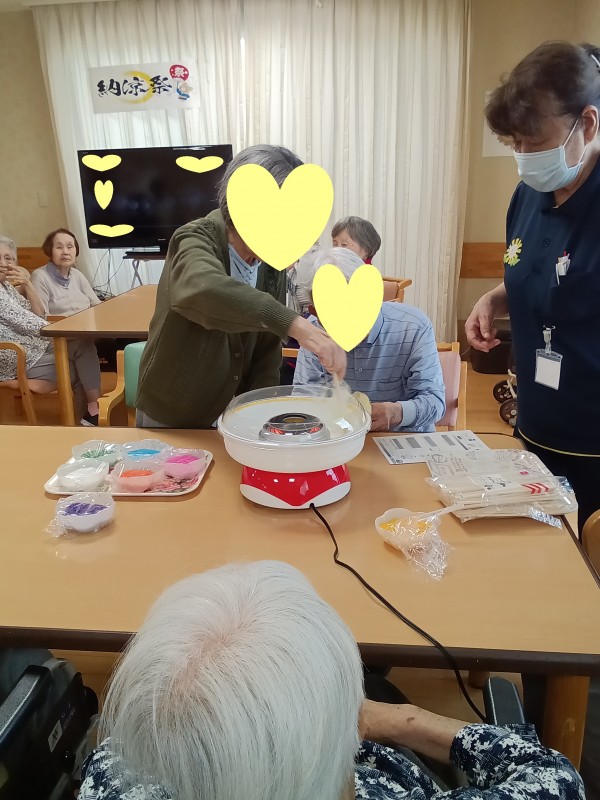 お祭りの屋台に行ったような気分を味わっていただきたく、今回は綿あめ作りを提案しました(*´ω`*)