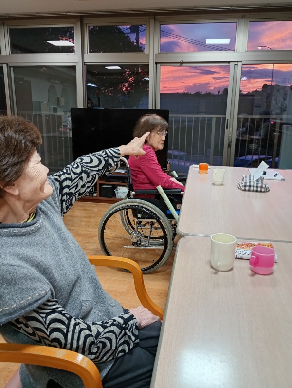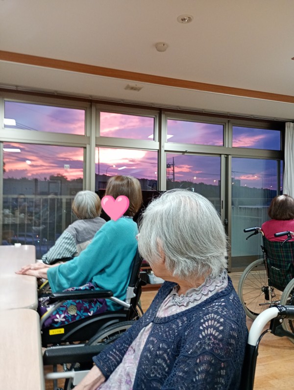 今日は夕焼けがと~~~ってもキレイだったので皆さんと一緒に食堂から観賞していました。