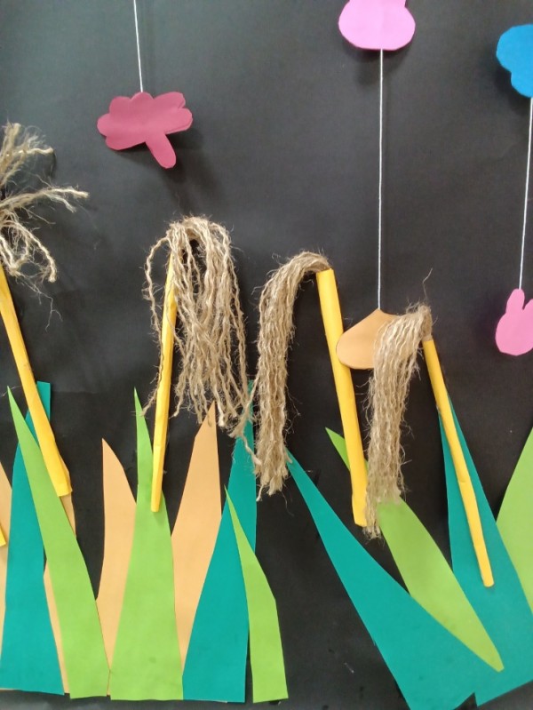すすきは麻ひもをほどいて作成しました♪