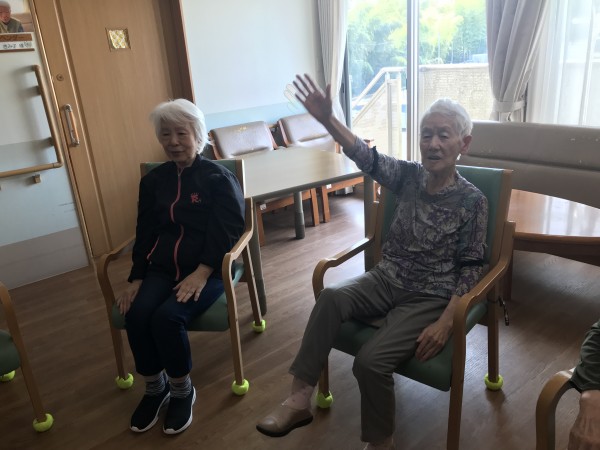 先生と利用者様全員で輪になって元気に体を動かしました\(^^)/