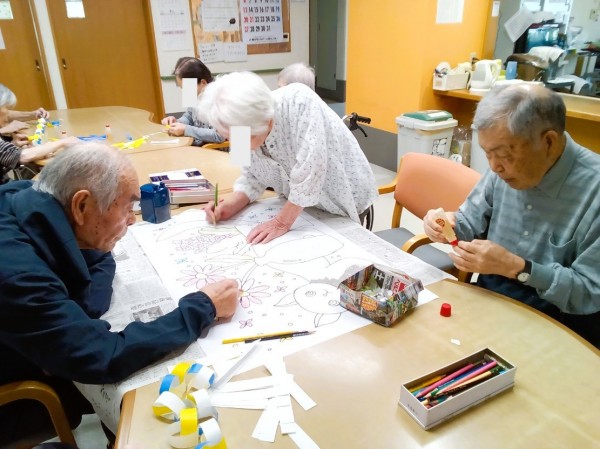 最近ご入居者様がはまっているもの、それは『塗り絵』『ちぎり絵』です!!