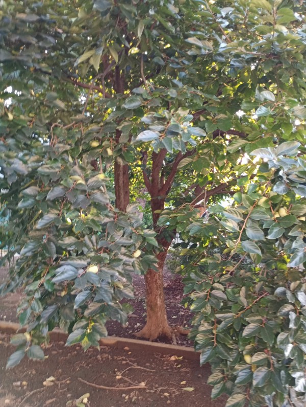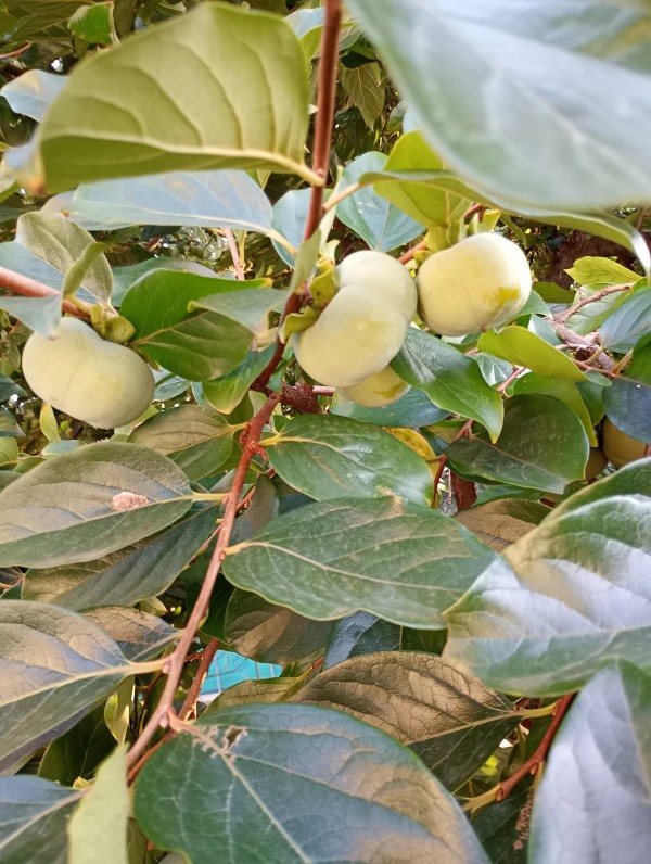 こちらの木…!なんの木か分かりますか?よーーく見るとまだ緑色ですが立派な柿が!!