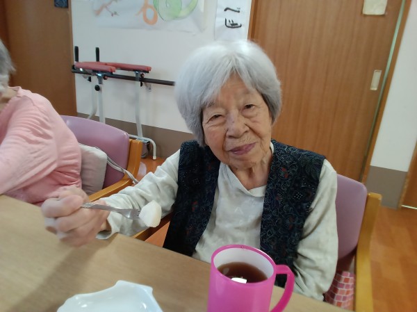 ちなみに、本日のおやつは蜂蜜カステラサンドの日でしたので、梨と蜂蜜カステラサンドの2つを召し上がって頂きましたよ。