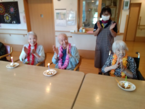 今回は3人いらっしゃったのですが、そのうちのお2人は入居されて初めてのお誕生日だったので、お2人とも喜んで下さいました(*^^*)
