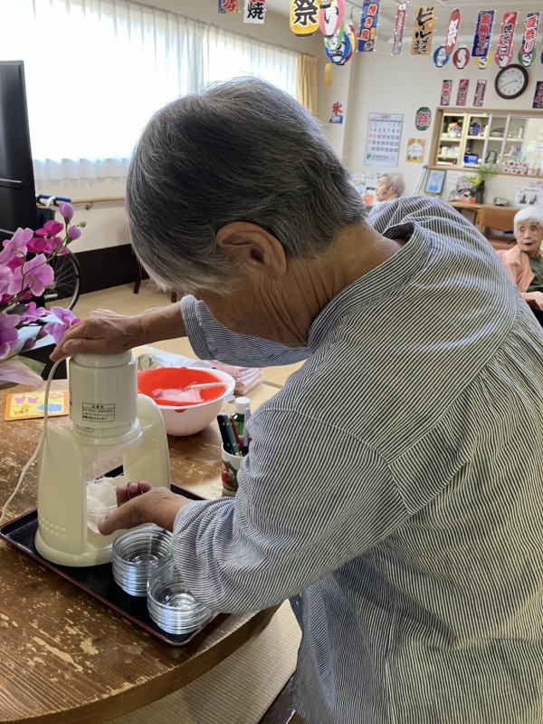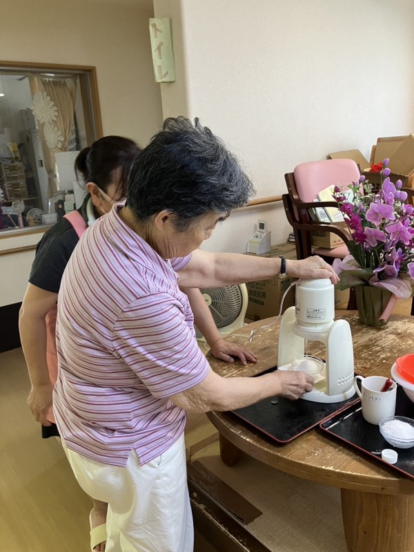 一言からおやつはかき氷を作って