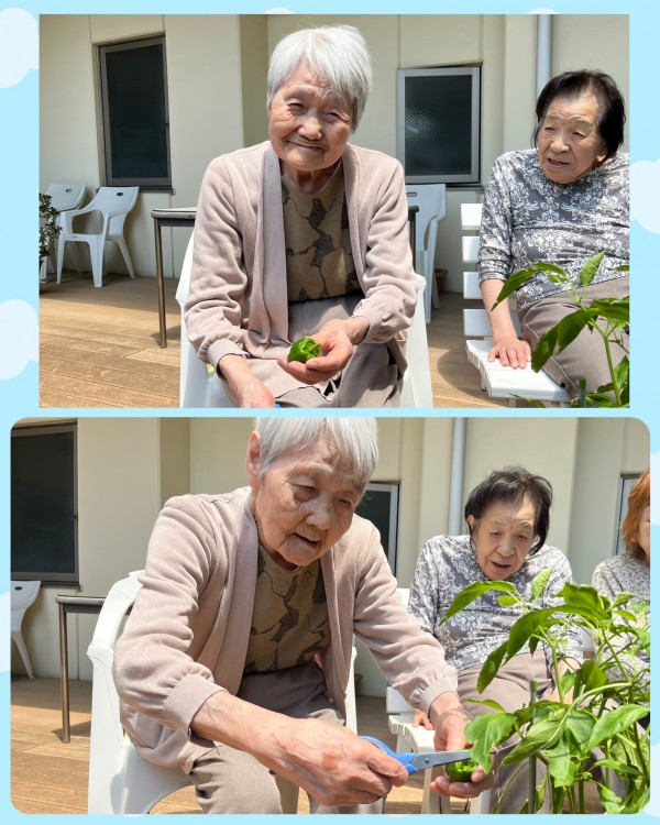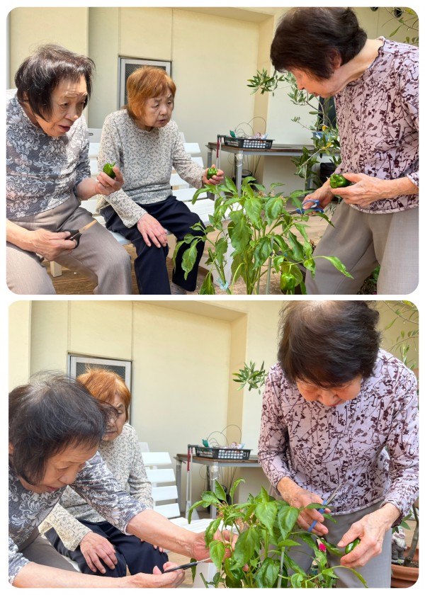皆さまと一緒に育ててきた家庭菜園のピーマンが鮮やかな緑色に実り