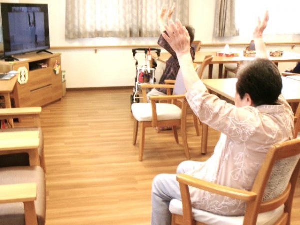 テレビの向こうの先生からは各事業所での様子をカメラを通して見る事が出来ます。