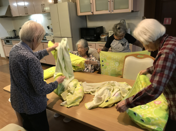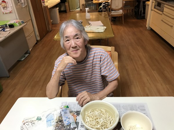 スタッフがお願いすると「仕事があれば何でもやりますよ」と畳物やもやしの根取りを手伝って下さいます。