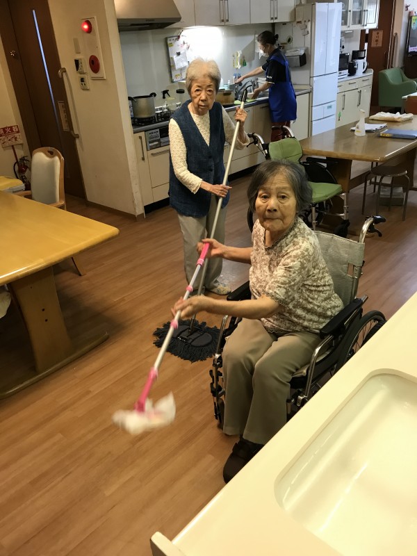 スタッフが腰を気遣うと「大丈夫、大好きだから」や「痛くなったら止めるから」と一生懸命フロアを綺麗にして下さいます。