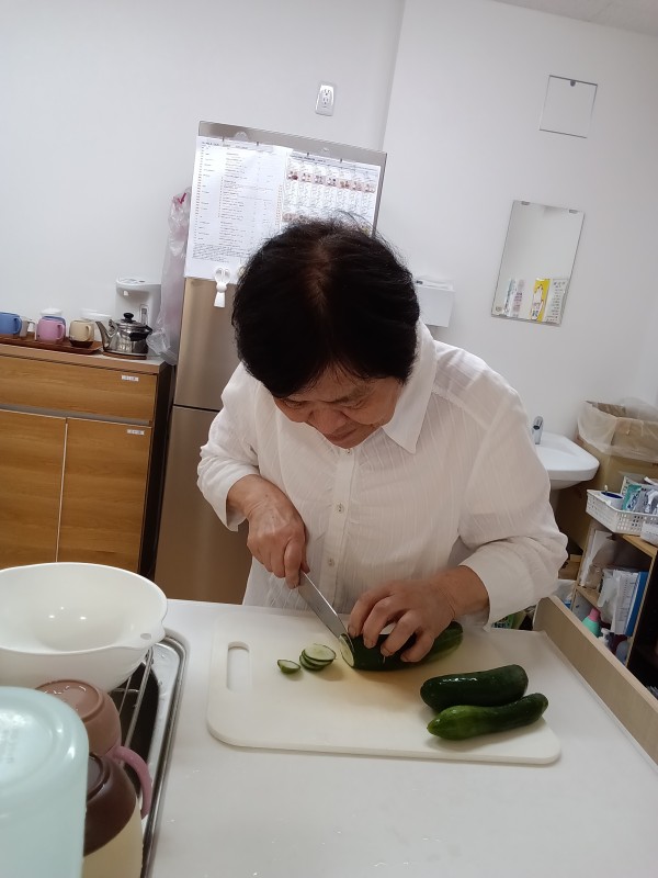 新鮮なきゅうりが届いたので、お料理していただきました。先ずは、輪切りに。お手の物ですね♪