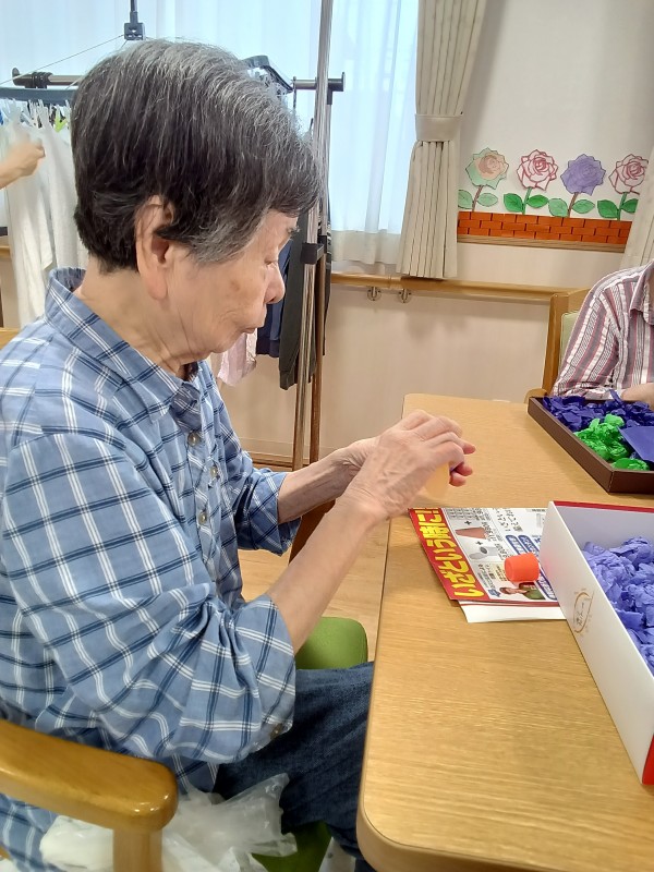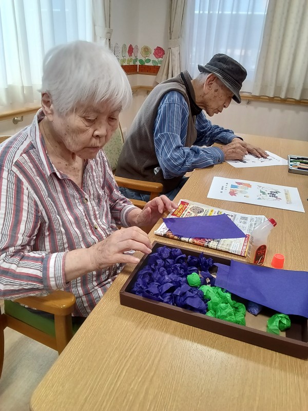こちらのテーブルでは季節の塗り絵と制作が進められていました。