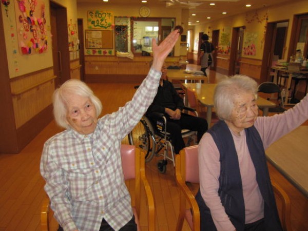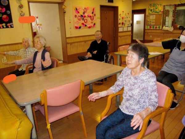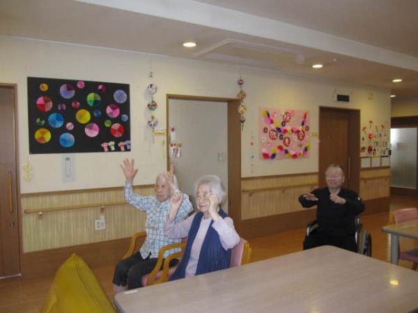 皆様!岡庭トレーナーの掛け声に合わせて元気よく体を動かしておりました。